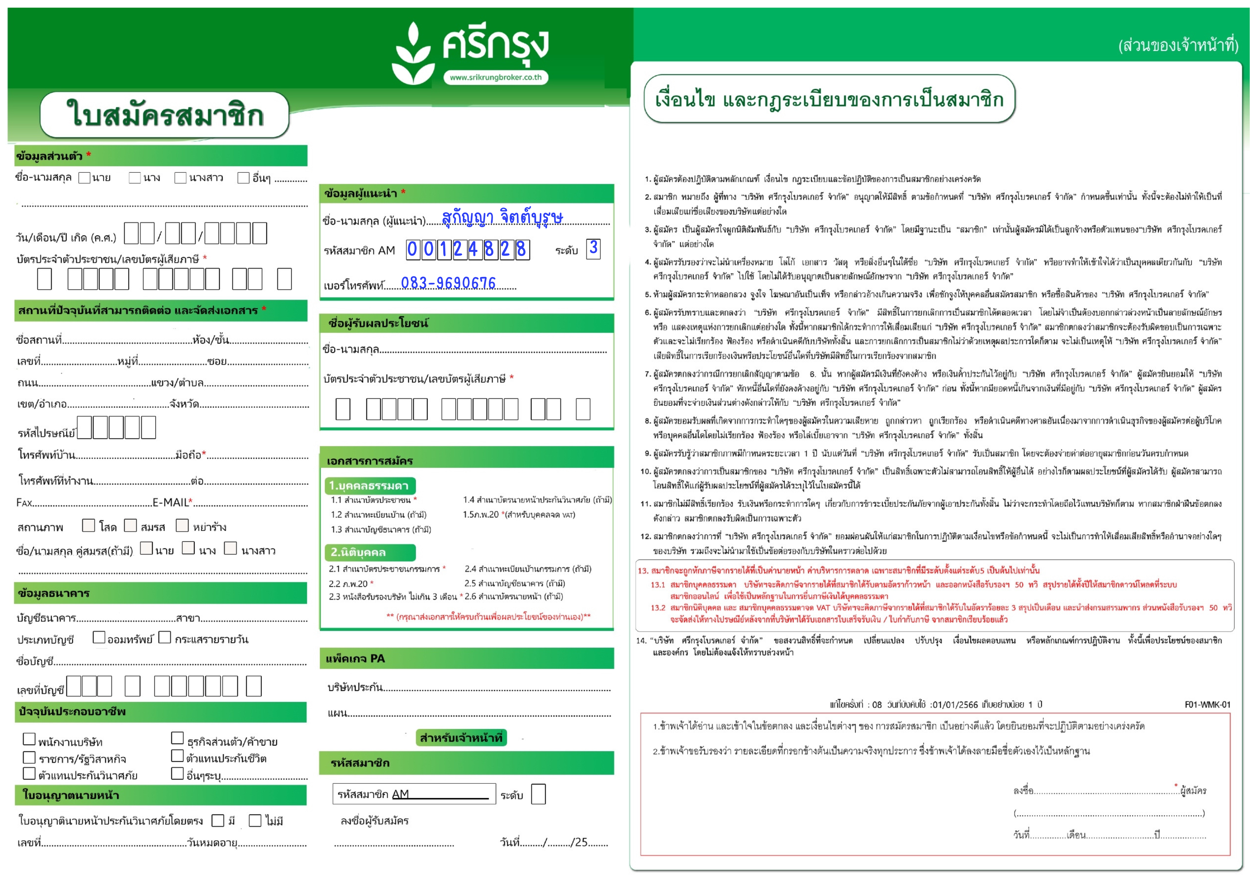 ใบสมัครสมาชิกศรีกรุงโบรคเกอร์