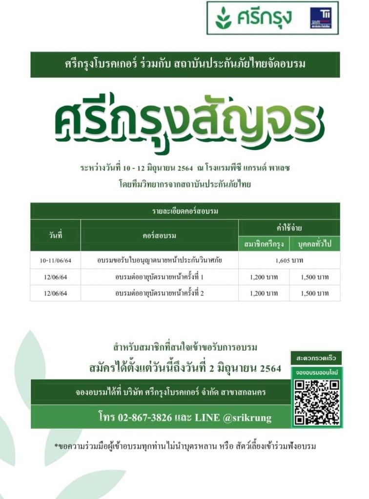 ✅ อัพเดทการอบรมศรีกรุงฯสัญจร มกราคม- มิถุนายน 2564