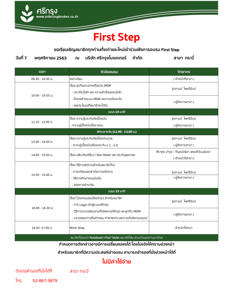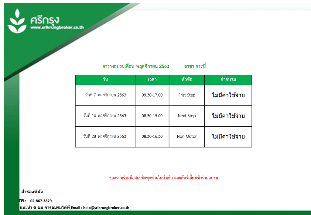 ✍️คอร์สอบรมความรู้ ศรีกรุงโบรคเกอร์ ประจำเดือน พฤศจิกายน ศรีกรุงโบรคเกอร์สาขากระบี่