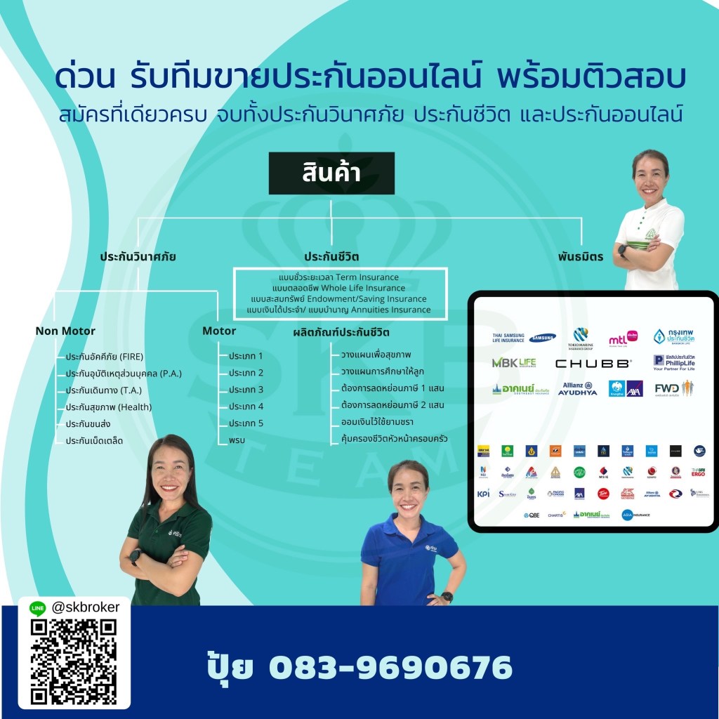 รับสมัครตัวแทนขายประกันภัยรถยนต์ นายหน้าประกันภัยวินาศภัย พรบ.รถยนต์ ร่วมธุรกิจประกันภัย