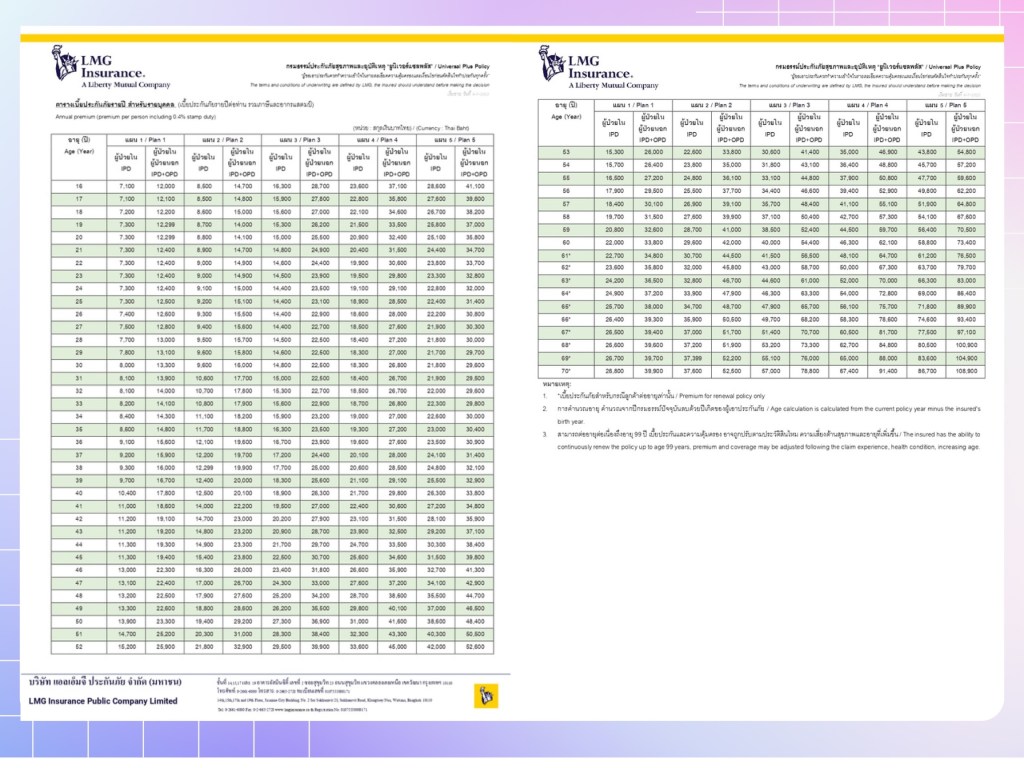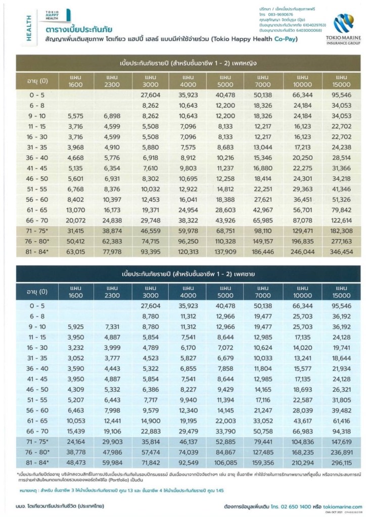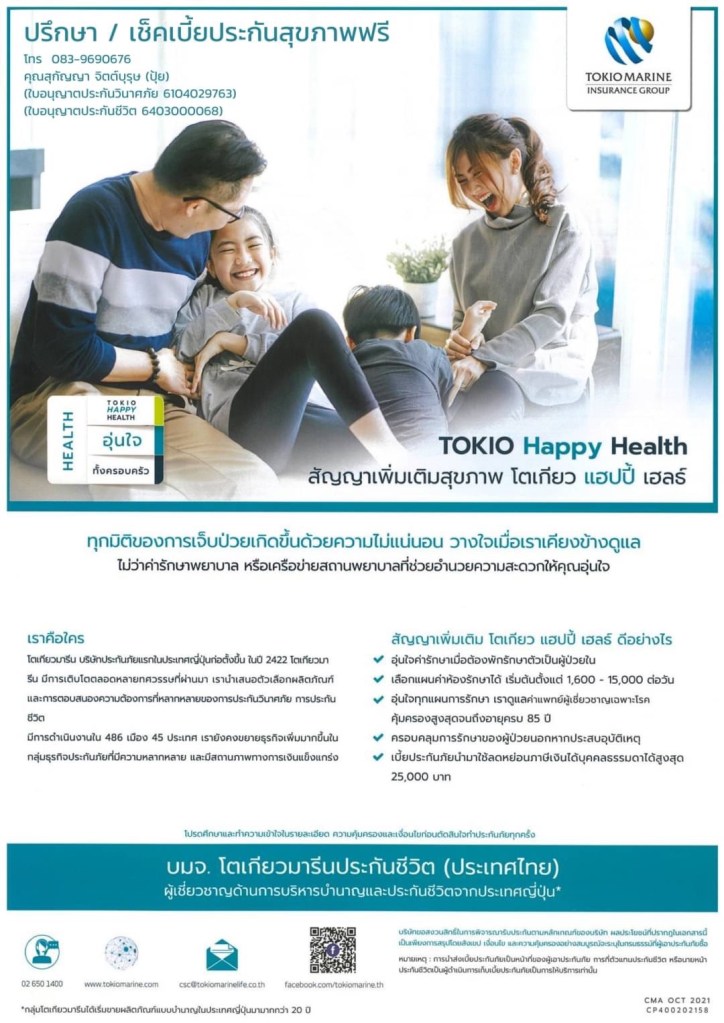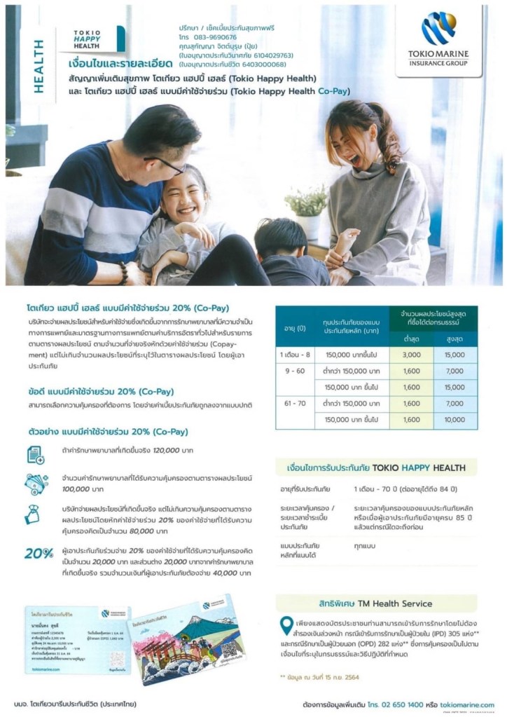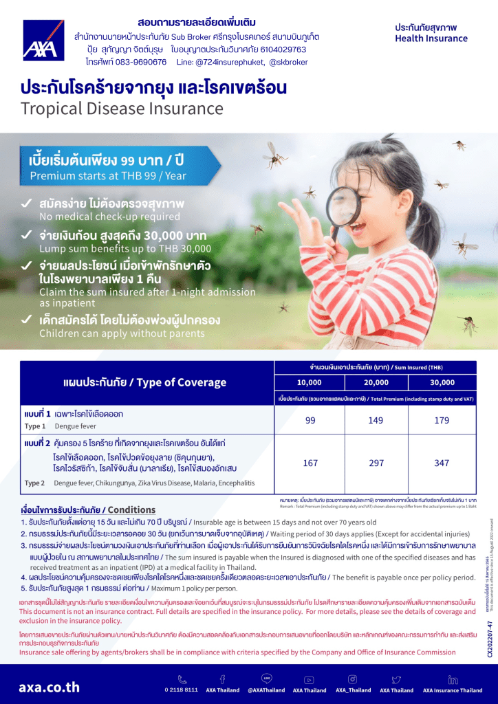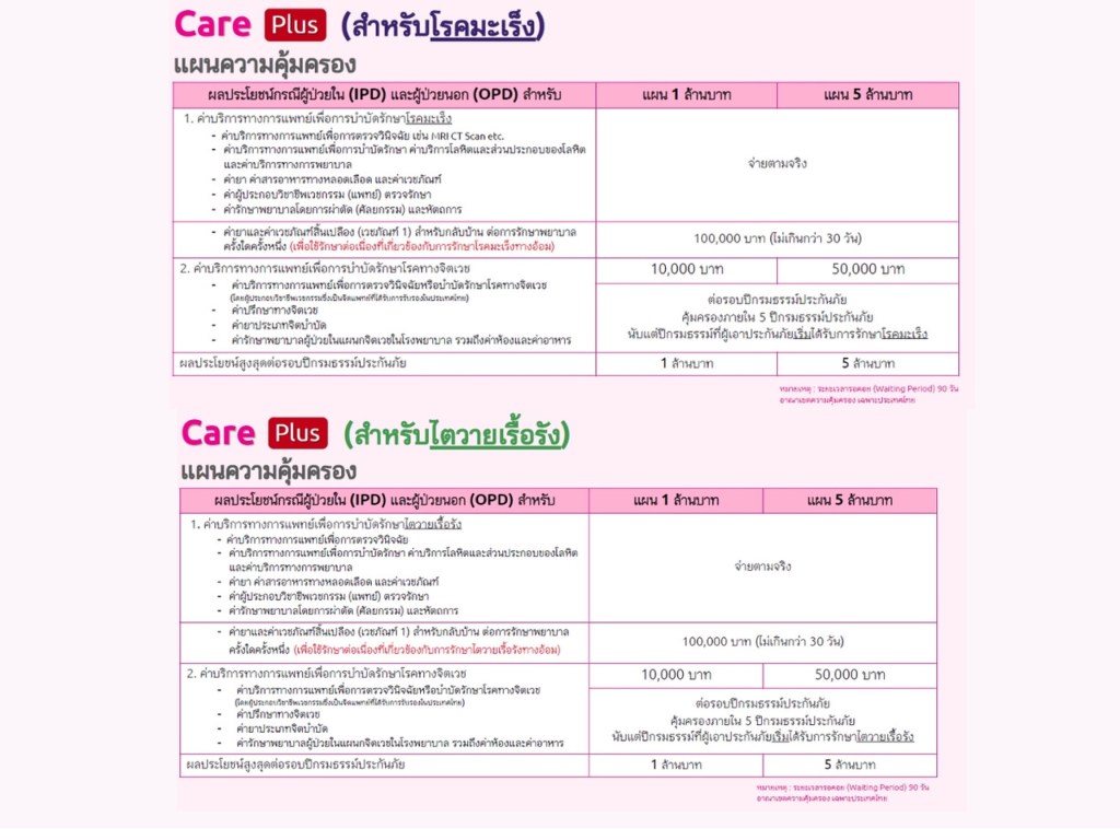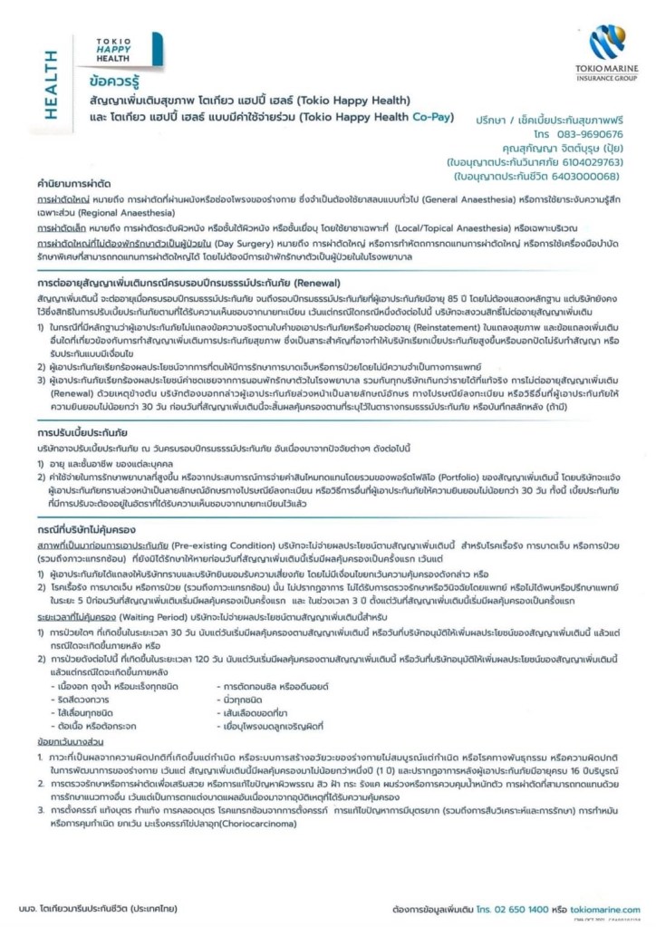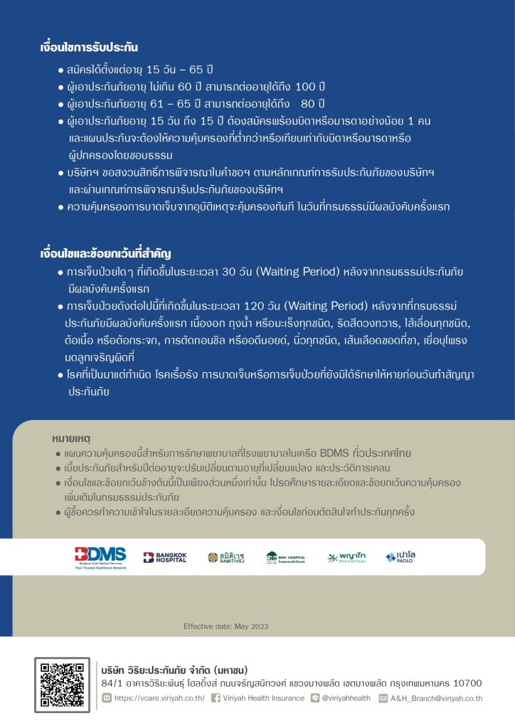 หมายเหตุ โรคที่เป็นก่อนวันมีผลบังคับในกรมธรรม์รายบุคคลจะไม่ได้รับความคุ้มครอง