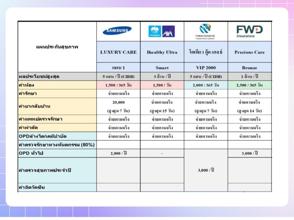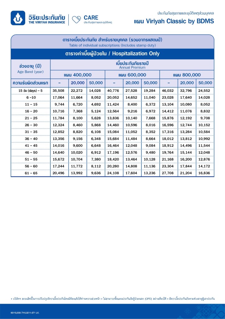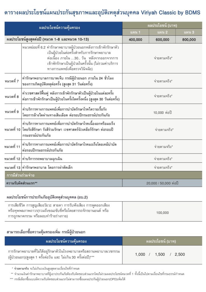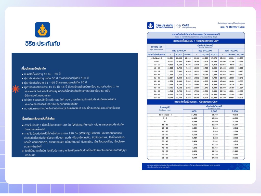 | หัวข้อ | ประกันชีวิต | ประกันสุขภาพวิริยะ |