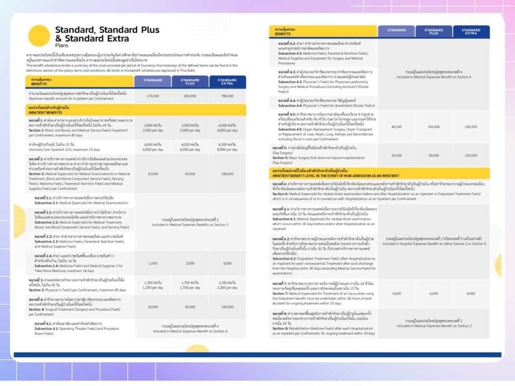 | วัตถุประสงค์การซื้อ | คุ้มครองการสูญเสียชีวิต | คุ้มครองค่ารักษาพยาบาลกรณีบาดเจ็บและเจ็บป่วย |