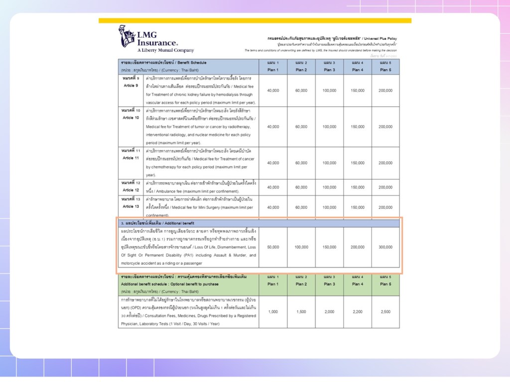 • สวัสดิการอื่น ๆ ที่ท่านมีอยู่และสามารถนำมาใช้ร่วมกันได้เพื่อประโยชน์สูงสุดของท่าน